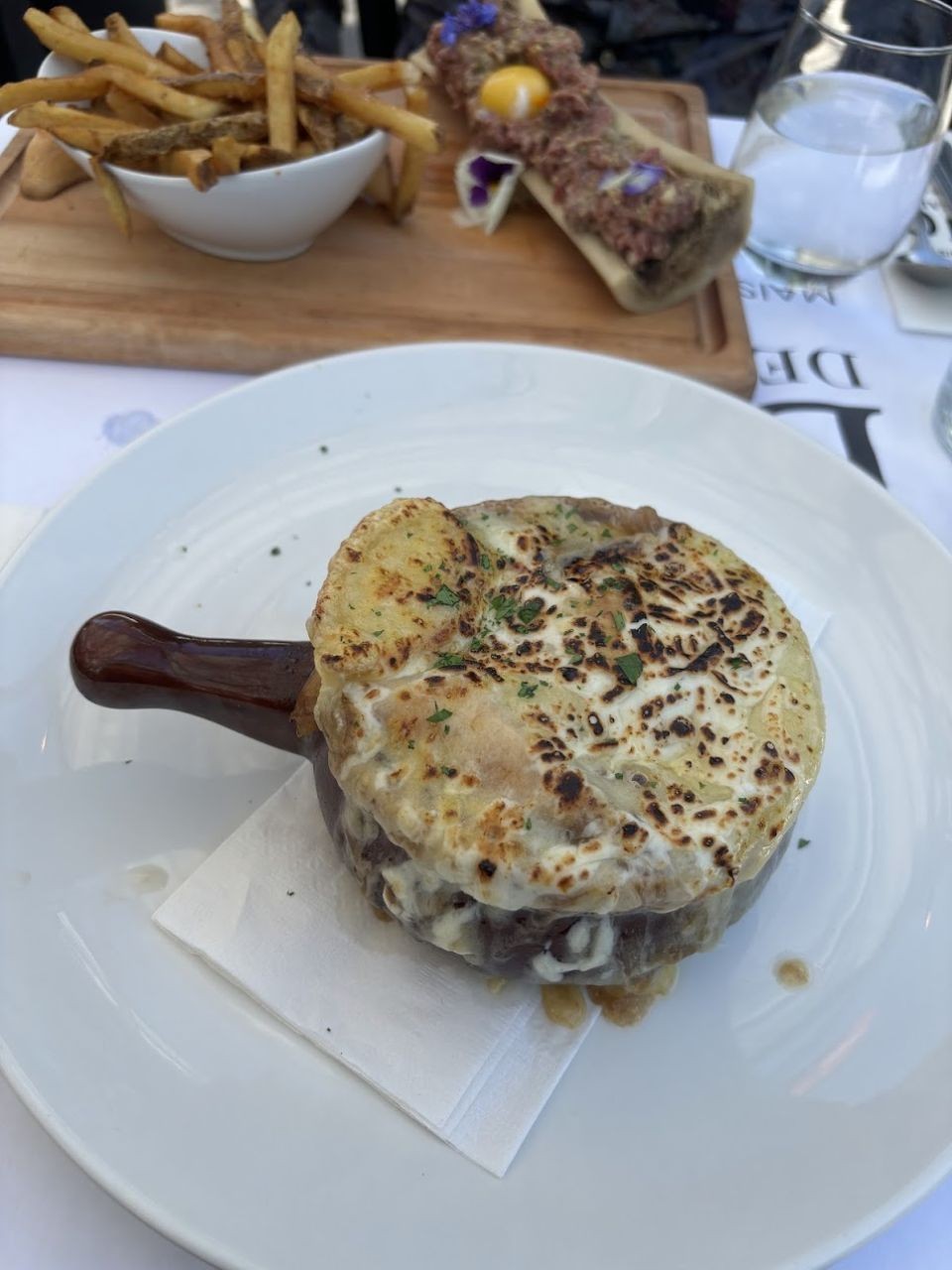 私は最近マイブームのフレンチオニオンスープ、彼はビーフタルタルを注文しました。つつけば溢れてくるほどたっぷり😲オニオンの甘さがほんとうにおいしくて幸せ~♡個人的にはすこーしチーズが多い気はしましたが、現時点でフレンチオニオンスープランキングNo.1👑です!
