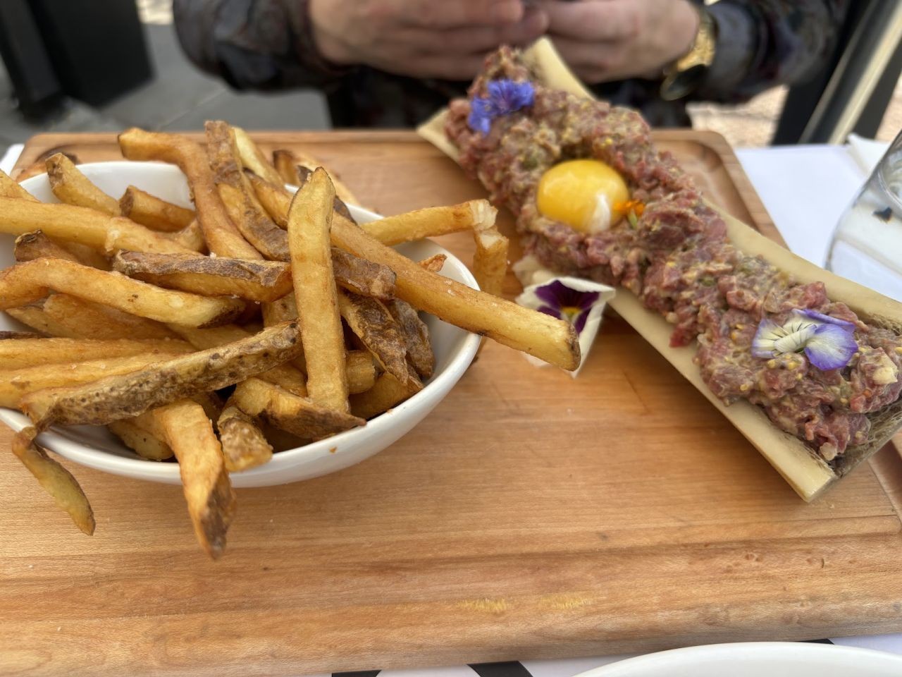 ちなみに彼が注文したビーフタルタルですが、びっくりポイントは本物のビーフボーンに詰められていること!!!!!周りにいたほかのお客さんも「それは何?何を注文したの?」と聞いてくるほど(笑)